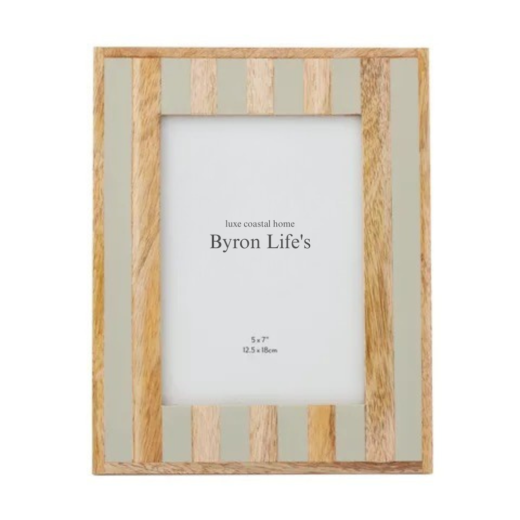 ウッドとレジンを組み合わせた上品なフレーム。落ち着いたセージグリーンを基調とした柔らかな色合いが、写真をやさしく引き立てます。ナチュラルな木目と滑らかなレジンの質感が美しく調和し、インテリアに自然な温かみをプラス。
