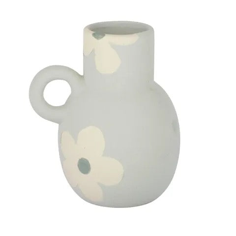 爽やかなブルーにお花柄が映えるフラワーベース。