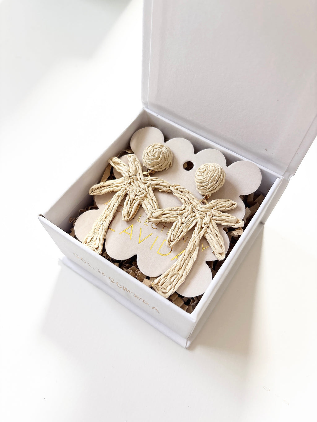 リゾート感のある涼しげな素材と、ヤシの木が目を惹きます。