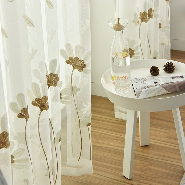 お花の刺繍が可愛いらしいレースカーテン。お部屋に安らぎを与えてくれる、あたたかみのあるデザインです。サイズ展開を豊富に揃えておりますので、サイズ選択からお選びください。丈は無料でお直し可能です。ご注文後にご希望のサイズをお知らせください。幅はお直し不可になります。